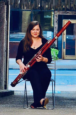 California native Stephanie Willow Patterson is Assistant Professor of Bassoon at the Schwob School of Music at Columbus State University, and Principal Bassoon of the Columbus Symphony (GA). Stephanie's performances often include staging and/or costumes, including Michael Daugherty’s Dead Elvis at the Wichita Knob Festival, and In Freundschaft by Karlheinz Stockhausen for bassoon-playing teddy bear. She has commissioned and co-commissioned works by composers including Elizabeth Kennedy Bayer, Nico Muhly, and Durwynne Hsieh. Her book, An Introduction to Contemporary Music for Bassoon and 64 Etudes is available through Trevco Music Publishing. She has performed at Carnegie Hall, the streets of Moscow, the pedestrian malls of Madrid, the Kappella hall of St. Petersburg, in a room with speakers on all sides in Belfast, Ireland, with Pierre Boulez at the Kunstmuseum Luzern, and atop a gallows at the Massachusetts Museum of Contemporary Art.